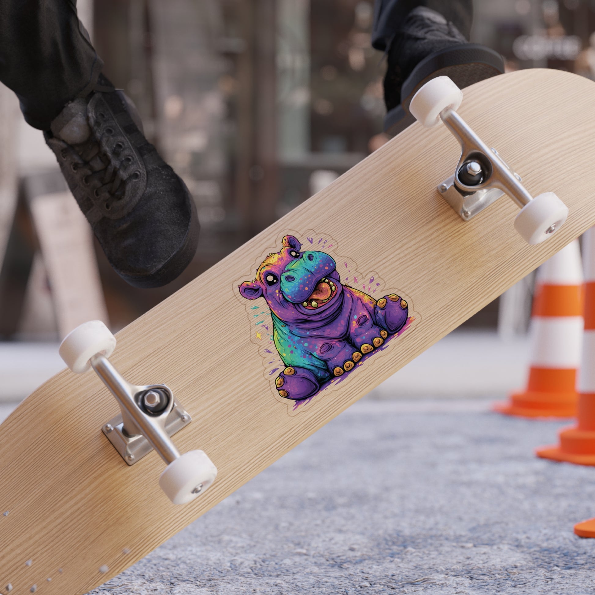 Bring pure joy wherever you stick it! This vibrant sticker features an adorable baby hippopotamus illustrated in bold kawaii style. With big sparkling eyes, rainbow-colored fur, and playful paint splashes, this little hippo radiates cartoonish innocence and charm. The crisp vector lines and vivid color palette make it pop beautifully against any surface, while the white background keeps it clean and versatile. Perfect for decorating laptops, water bottles, journals, or anywhere that could use a splash of happiness!