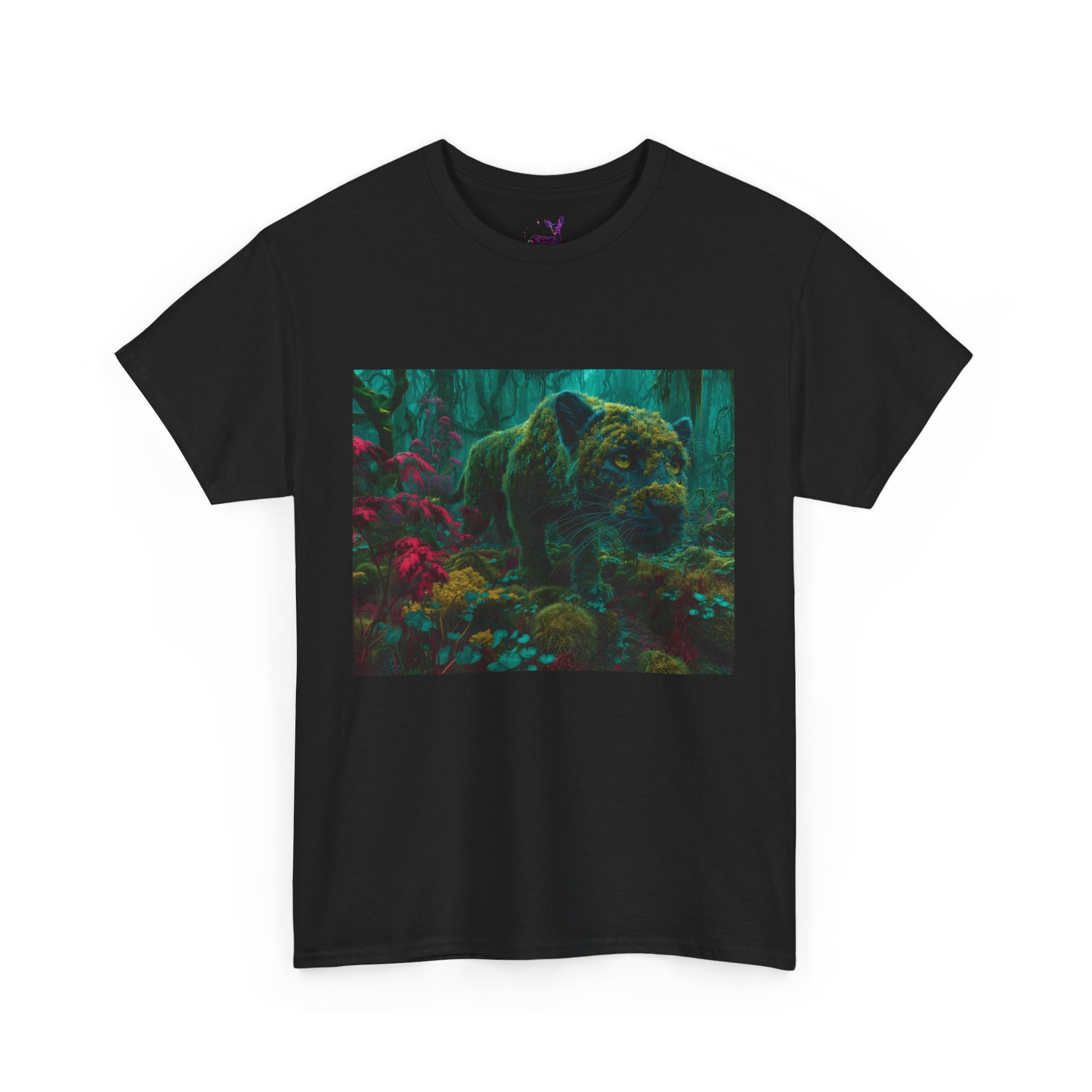 Now, this elusive creature stalks onto your shirt. Wear Shadowfen and carry a piece of the Lichen Verse with you — a mysterious, elegant guardian whose pulse is the rhythm of the enchanted wetlands, wild yet impossibly connected to the living forest.