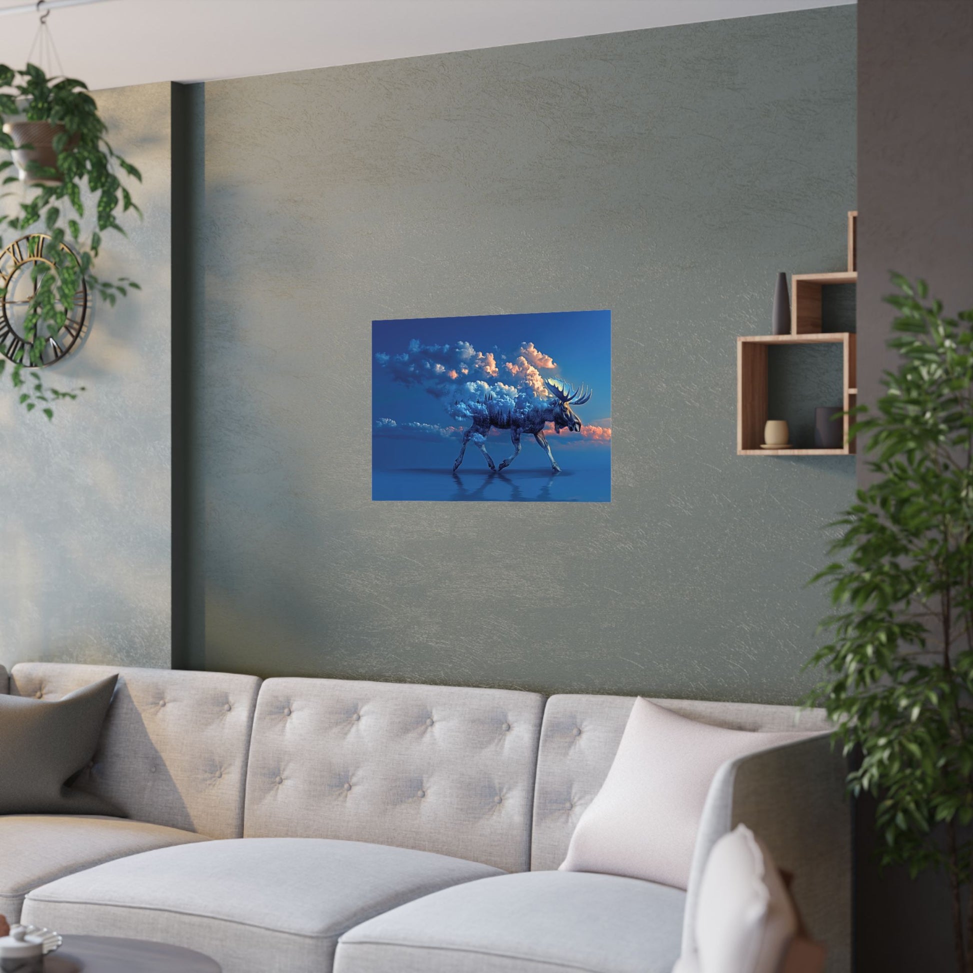 Silent Majesty Poster – Surreal Sky Moose Crossing Water
