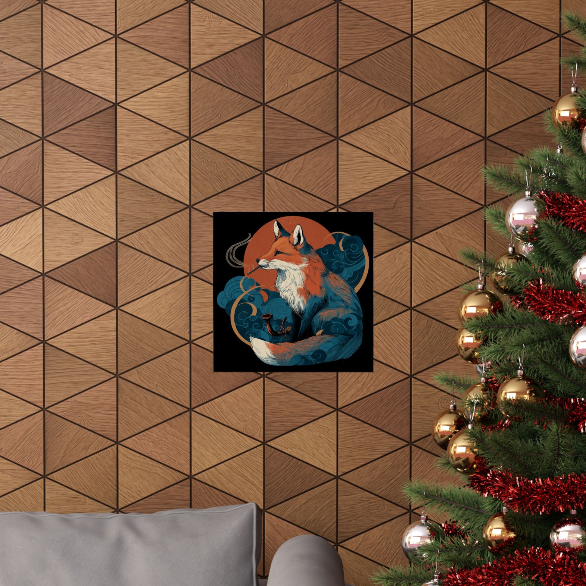 A mysterious fox exhales wisps of smoke in this striking Japanese-style illustration, blending traditional aesthetics with a modern, edgy twist. Perfect for lovers of folklore, bold art, and a touch of the enigmatic, this poster adds a sense of mystique to any wall.