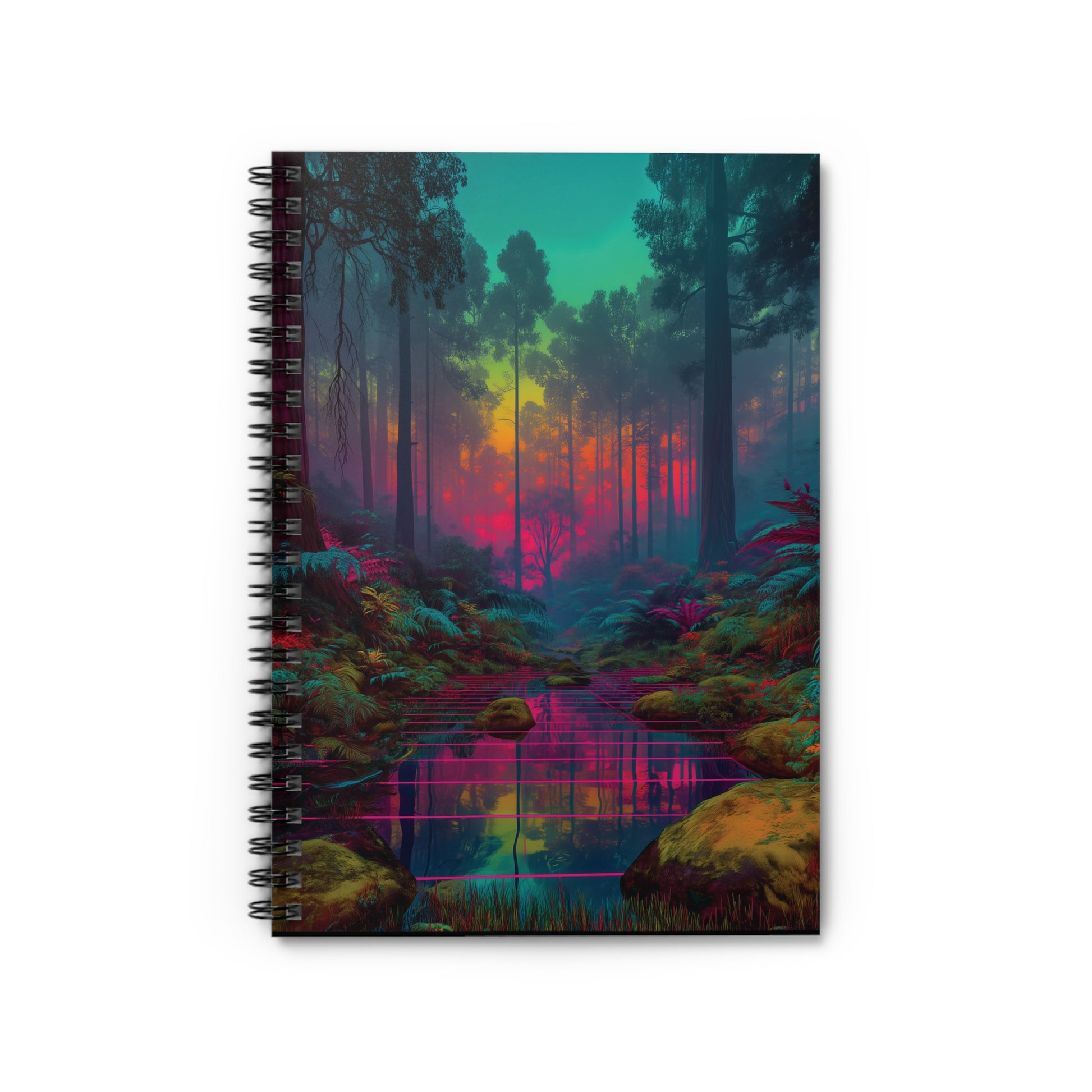 Trippy Simulation Spiral Notebook – Vaporwave Meets High-Def Nature, Surreal Grid Aesthetic