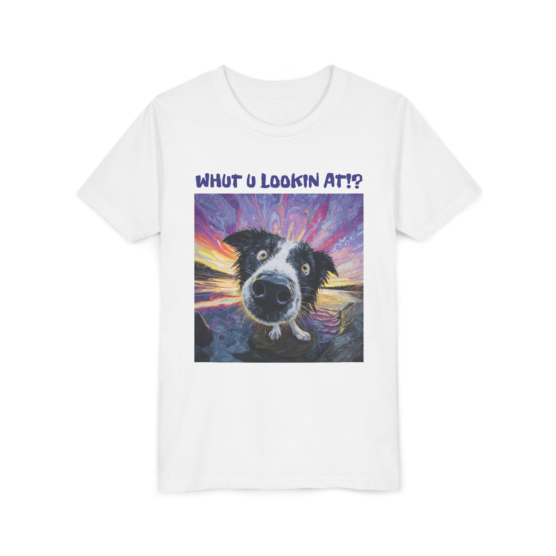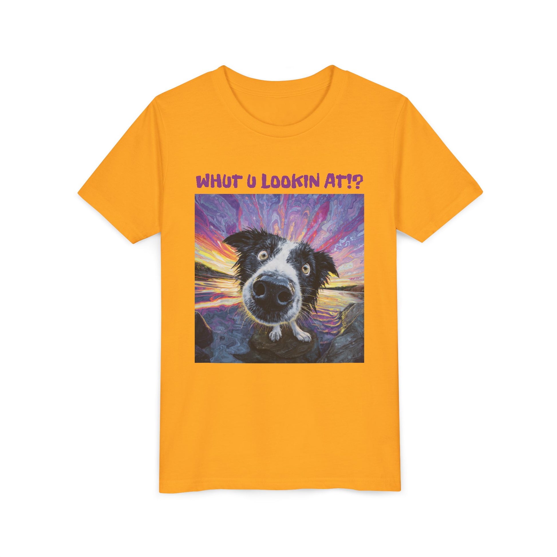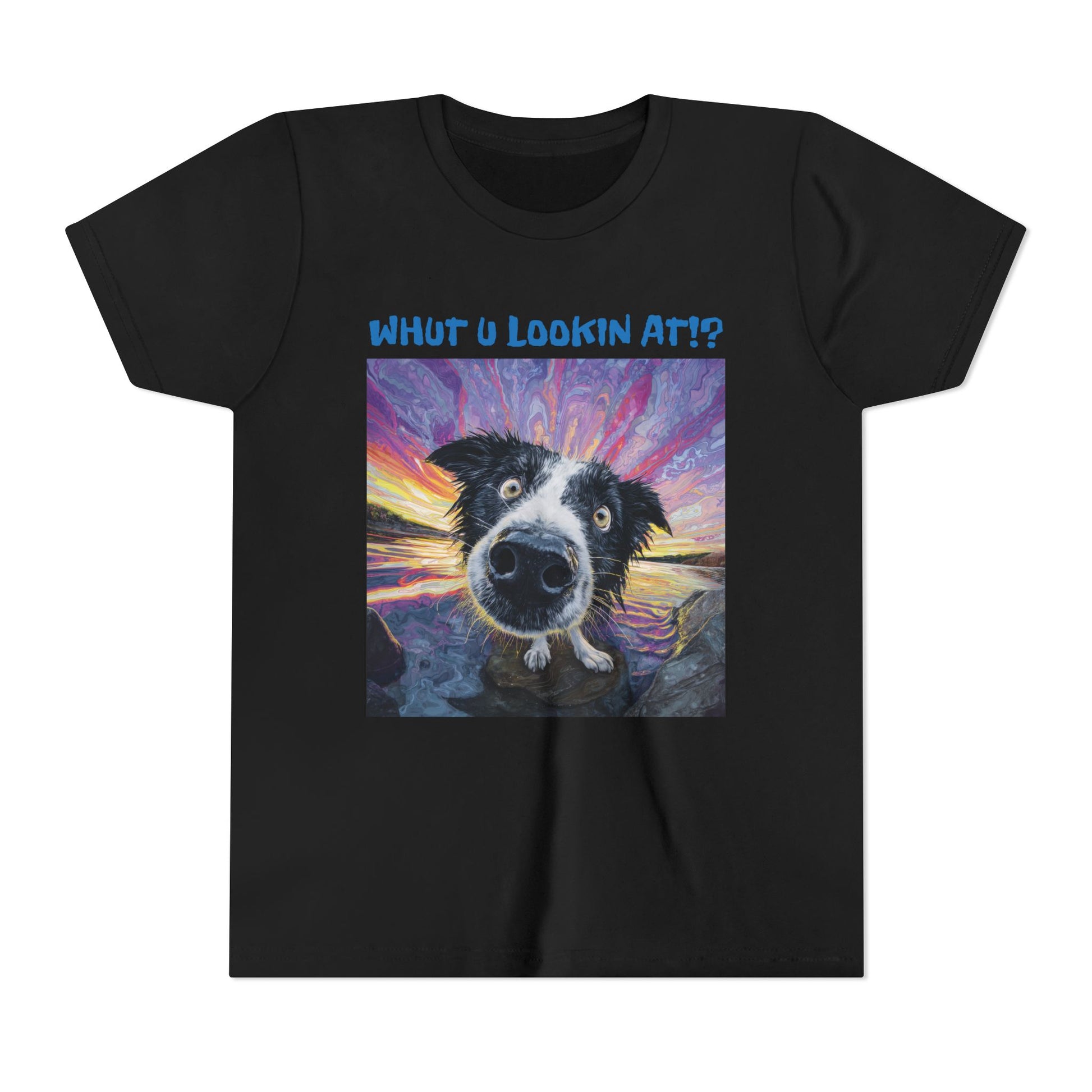 Whut U Lookin At!? Goofy Border Collie Sarcastic Youth Short Sleeve Tee