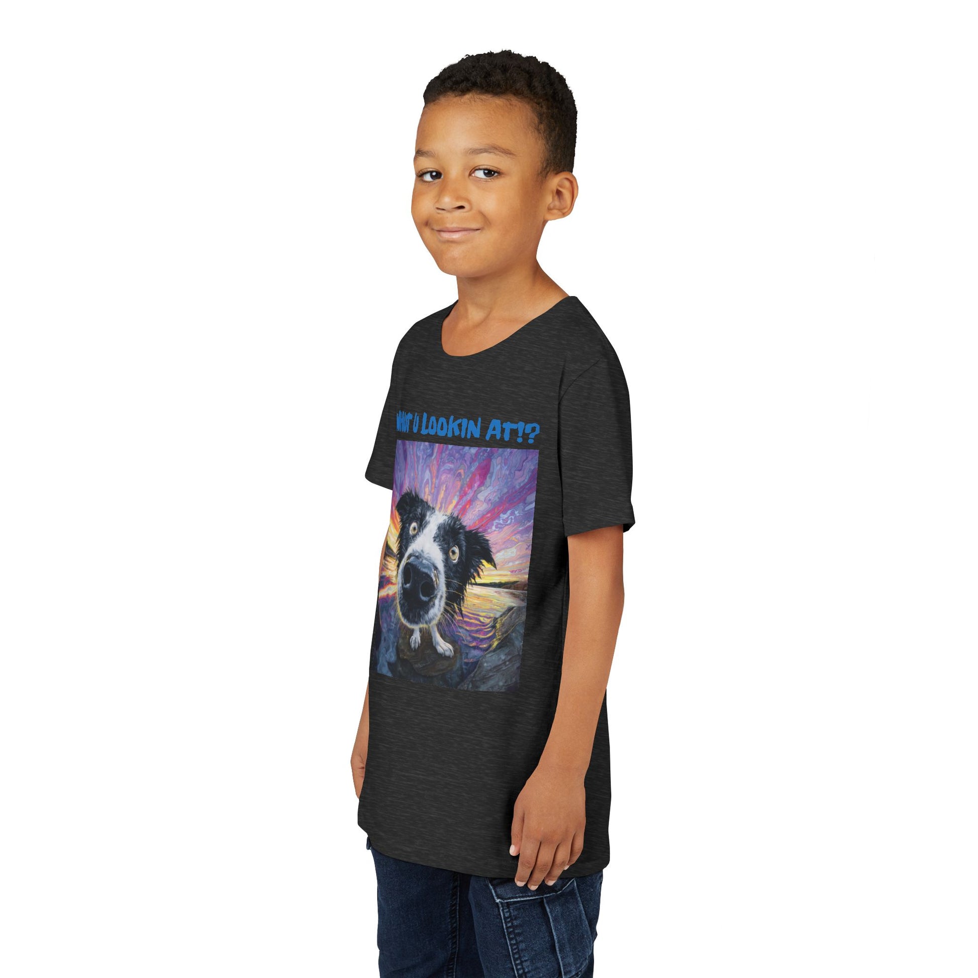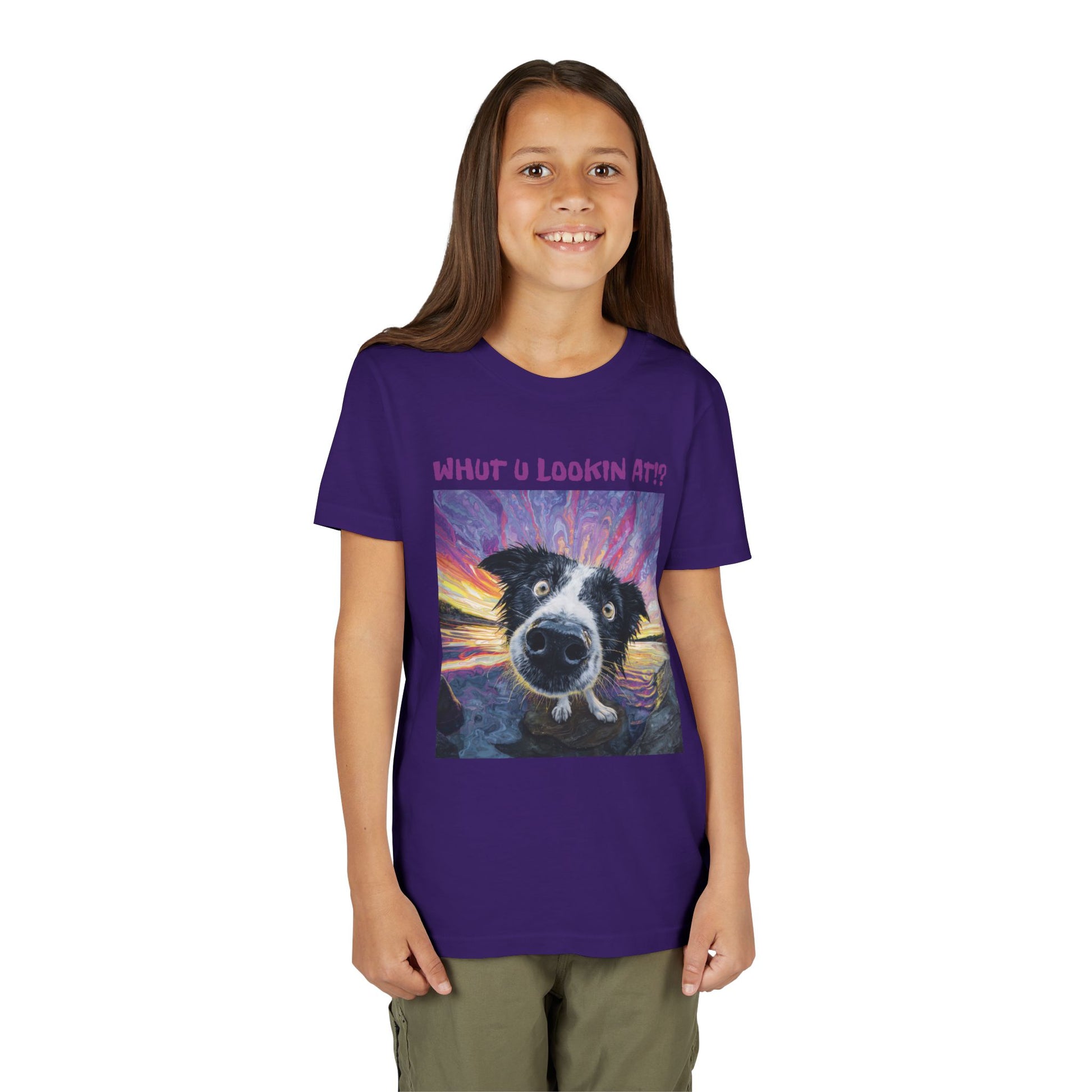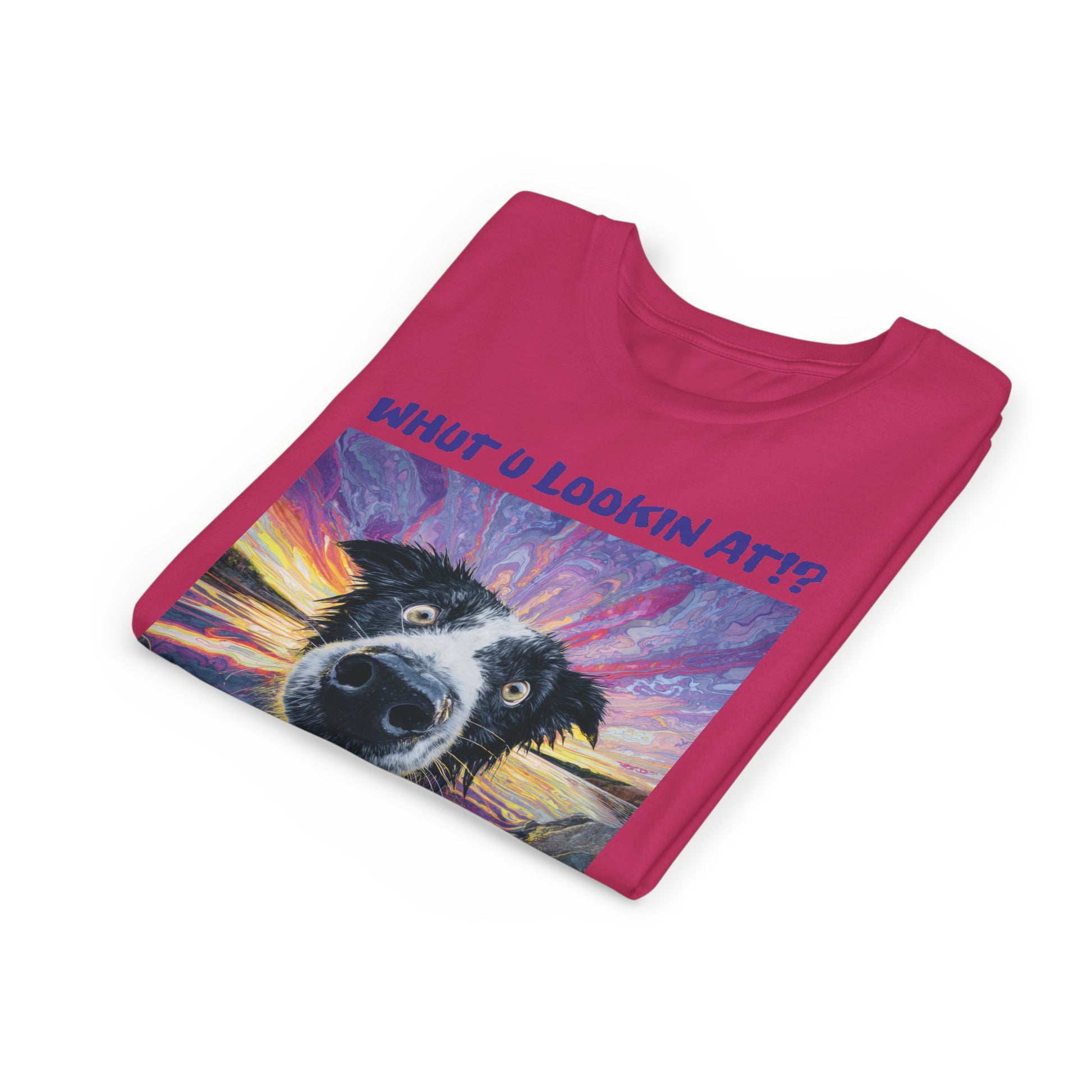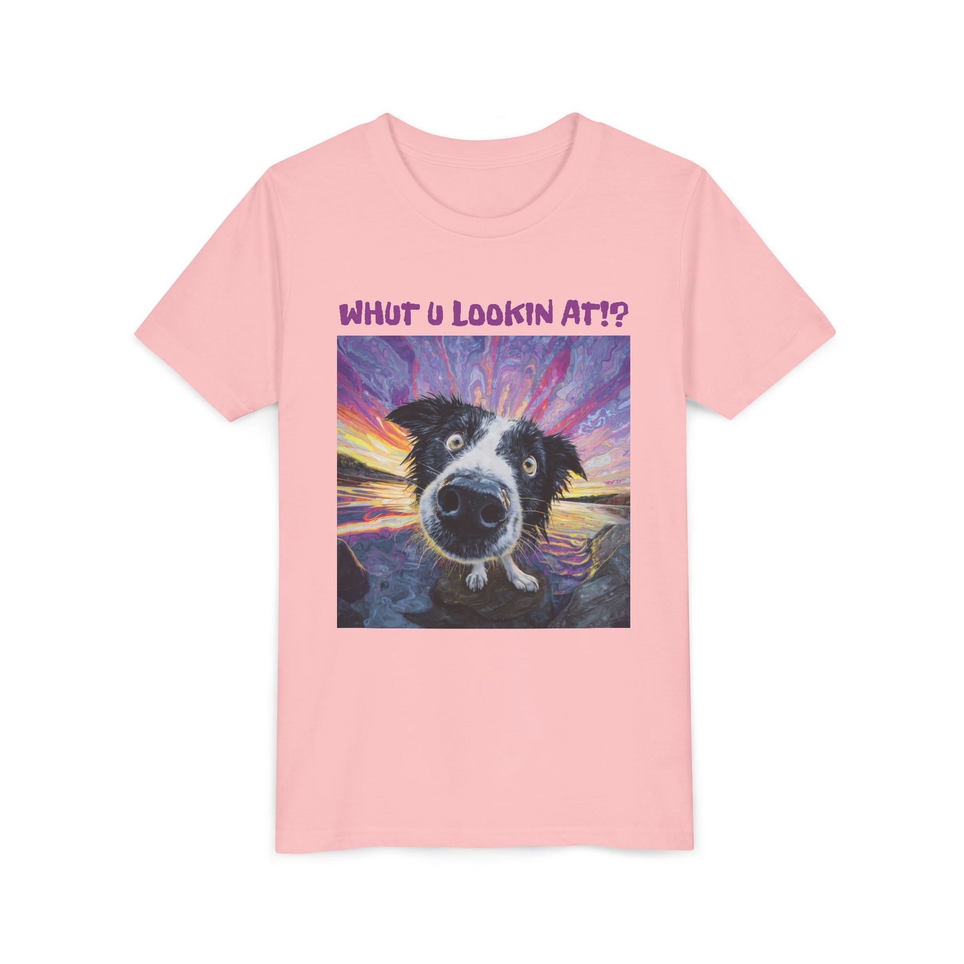 Whut U Lookin At!? Goofy Border Collie Sarcastic Youth Short Sleeve Tee